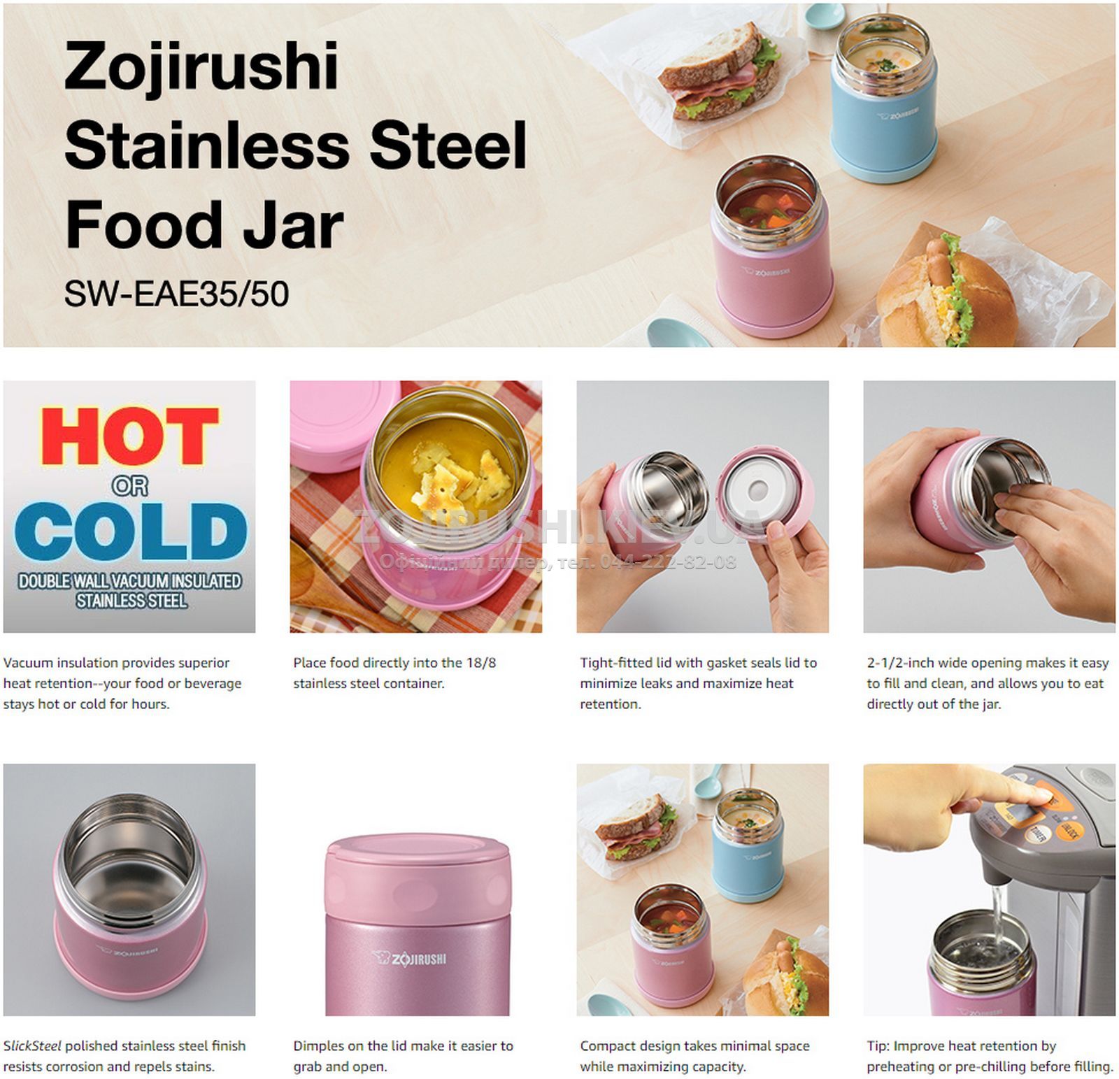 Термос харчової японської компанії Zojirushi SW-EAE50 об'ємом 0,5 літра. У ньому ви можете зберігати перші чи другі, гарячі чи холодні страви, напої, супи, каші, десерти. Його щільно встановлена кришка з прокладкою, дозволяє мінімізувати витік і максимізувати збереження тепла. ОСОБЛИВОСТІ ХАРЧОВОГО ТЕРМОСУ японський багатонаціональний виробник та продавець термосів, включаючи хлібопічок, рисоварок, електричних чайників, термопотів, а також диспенсерів для напоїв та побутової електроніки. Компанія була заснована в 1918 році як Торгова компанія братів Ітікава в Осаці, а в 1948 році була перетворена на Kyowa Manufacturing Co., Ltd. У 1961 році її назва була знову змінена на Zojirushi Corporation і був прийнятий її корпоративний логотип, включаючи слоника (Zojirushi означає «знак слона»). Вона має філію в Південній Кореї та дочірні компанії в Тайвані, Китаї, Гонконгу та США. Zojirushi котирується на Токійській фондовій біржі. ЧОМУ ZOJIRUSHI КРАЩИЙ ТЕРМОС ДЛЯ ЇЖИ? в світі. Zojirushi - це не лише найкращий японський термос, а й найкращий термос із випуску, що підтверджують продажі компанії по всьому світу, які досягли $1 млрд у 2020 році, що робить Зоджірусі лідером не тільки в якості, а й у доходах.