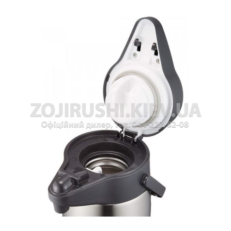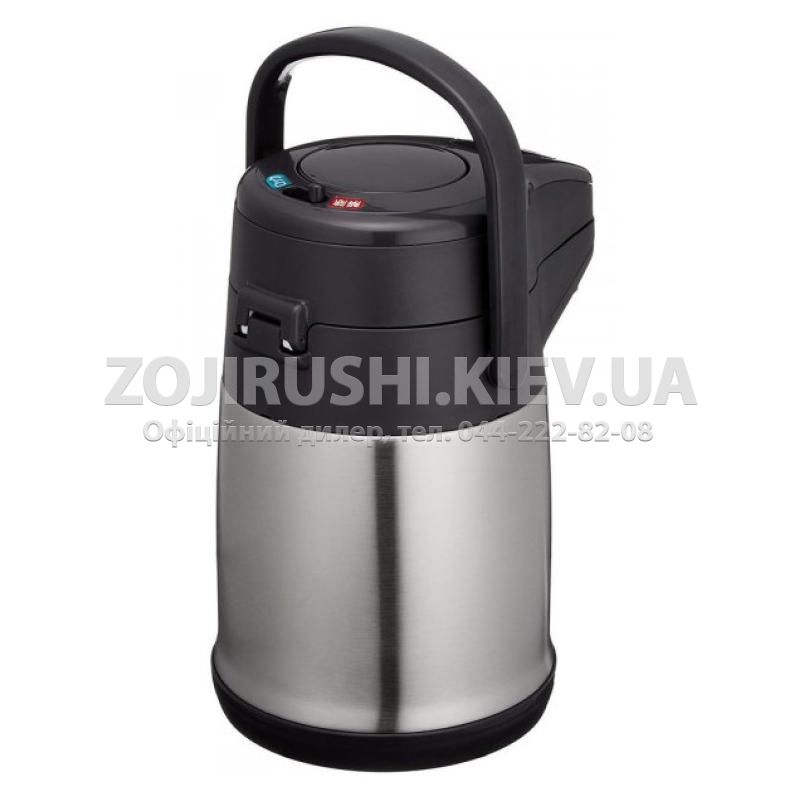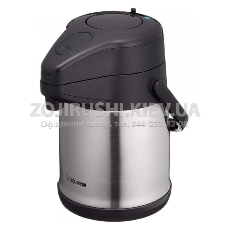 Термос ZOJIRUSHI SR-CC оснащений помпою та призначений для домашнього або будь-якого іншого стаціонарного використання. Випускається в об'ємах 2.2 та 3.0 літри, що дозволяє використовувати його в компанії з кількох осіб для зберігання гарячих чи холодних напоїв. Колба з нержавіючої сталі здатна витримувати високі перепади температури і не схильна до пошкоджень під час перекидання. Широка шийка діаметром 70 мм розрахована на легкий доступ усередину, наприклад, при опусканні кубиків льоду. Верхня кришка термоса оснащена клавішею з помпою, що дозволяє наливати напій без відкривання. Наявність спеціального фіксатора запобігає випадковому натисканню помпи під час транспортування виробу. На дні термоса знаходиться поворотна стійка, завдяки якій термос легко обертається навколо своєї осі, стоячи на столі.