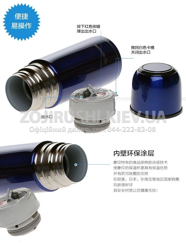 - Унікальні японські технології виробництва Zojirushi дозволили зменшити вакуумний зазор у металевій колбі зі стандартних 2 мм до 1 мм, а стінки колби виконати із високоміцної сталі зменшеної товщини. Ці моделі зберігають температуру так само довго, як і традиційні вироби, але помітно легші і компактніші за них. інструменти для зберігання та транспортування молока, пива, вина, інших напоїв, а також кріогенно заморожених речовин. З цієї сталі виготовляють кухонне, столове приладдя, різний посуд, медичні хірургічні інструменти та обладнання. кава і чай, оскільки зберігається їхній оригінальний смак. Так само завдяки тефлоновому покриттю внутрішні стінки мало схильні до забруднення і значно легше миються. Велика ширина шийки дозволяє значно легше вимивати і чистити термос зсередини.